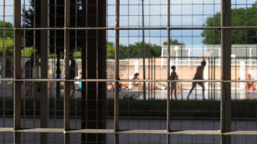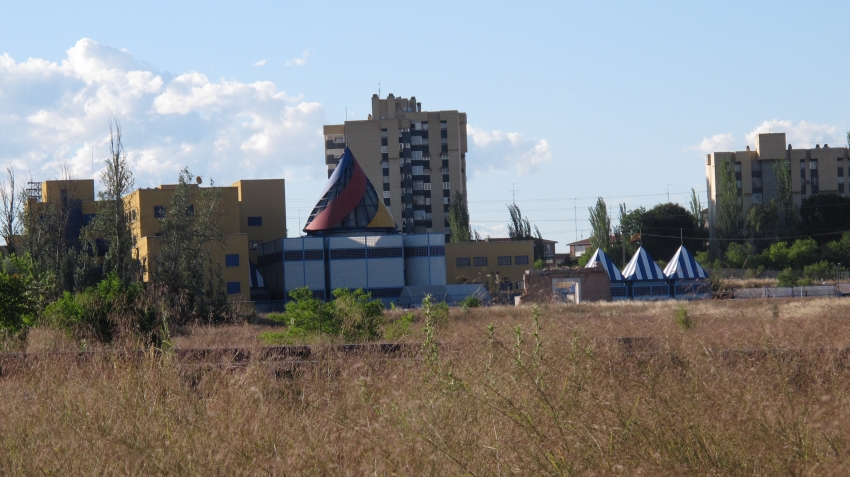 Lo que fuera el hospital de la cárcel no fue demolido junto al panóptico, sino que se transformó en una cárcel nueva: el CIE. La valla es de senderismo…y conduce a una cárcel. Un caminito con amables barandas de madera y coloridas cúpulas circenses enmascaran la dureza y crueldad de este lugar: espacio para la tramitación de papeles; cárcel para quien no los tiene y es encerrado –cuerpos invisibles tras esta frontera- hasta atravesar de vuelta esa otra que se saltó en busca de una vida mejor.