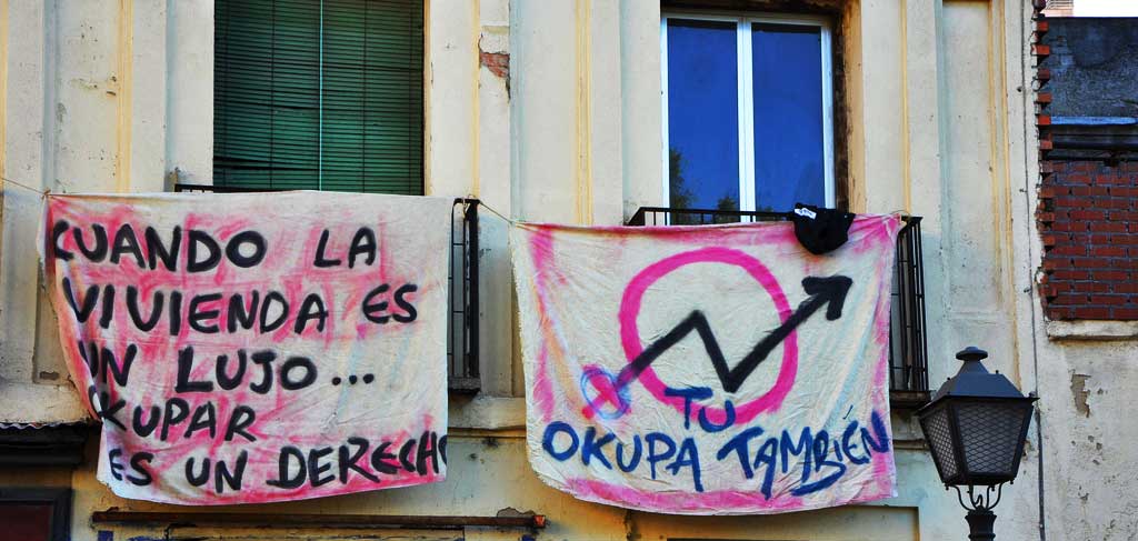 Lo que sí cabe plantearse es la naturalización del deseo de posesión sin conectarlo con la producción cultural de las necesidades sociales y los modos de vida en el capitalismo actual. Eso es lo que hacen algunas “chinitas” en el mecanismo del progreso lineal prefabricado. La o(k/c)upación es una de esas chinitas que han proliferado de una forma bestial en los últimos años en barrios como Carabanchel como un modo de satisfacer necesidades por parte de todo tipo de poblaciones y ligadas a todo tipo de proyectos (vivienda colectiva, obra social, realojos tras desahucios…). Las okupaciones se han ido constituyendo como una forma de desarticular la gramática de las prácticas inscrita en el modo de vida hegemónico, alumbrando nuevos posibles, dibujando en lo real otras alternativas de vida. Okupar, y hacerlo colectivamente, rompe con lo cotidiano. Ya se pueden ver algunos efectos: “ahora hablo con mi abuela de okupación porque lo ve en el programa de Ana Rosa”.
