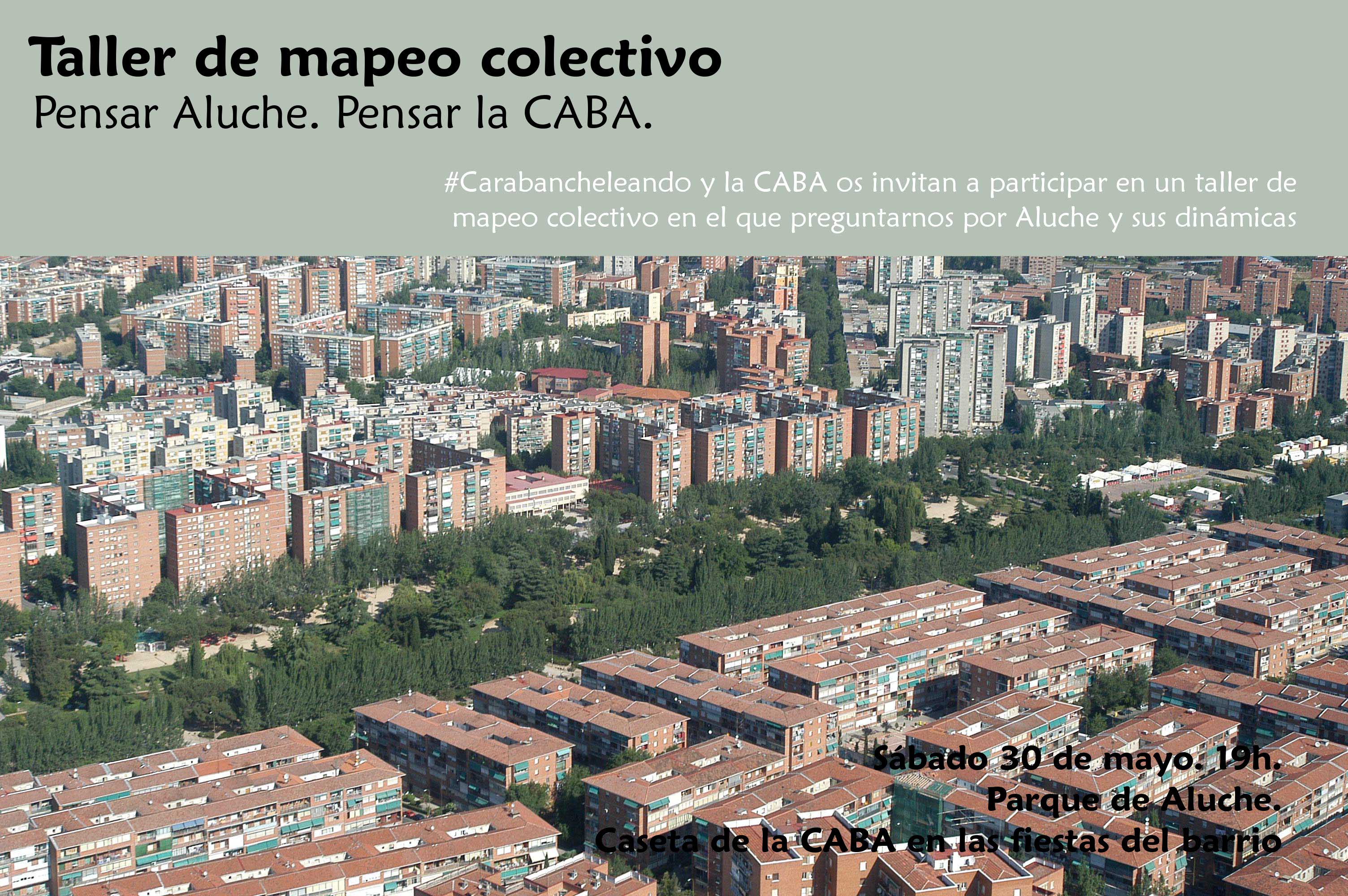 #Carabancheleando y la CABA (Casa Autogestionada del Barrio de Aluche) os invitan a participar en un taller de mapeo colectivo en el que preguntarnos por Aluche y sus dinámicas. El sábado 30 de mayo, a las 19h, en la caseta que la CABA tendrá en las fiestas del barrio (parque de Aluche).