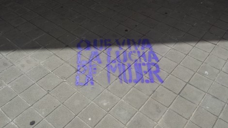 Del grupo se distingue a una de nuestras compañeras por su mochila en la espalda y grabadora, nos acompaña el resto del paseo haciendo grabación en directo para el programa “Suena Radio” en el que participa; recogiendo así entrevistas y relatos de las diferentes mujeres que nos acompañarán a lo largo del paseo, voces a través de las ondas que hilaran las distintas paradas programadas para esta ocasión. Mientras tanto, otras aprovechan este primer impasse para marcar territorio con algunos lemas feministas: “Nosotras, Mujeres unidas en la lucha”.